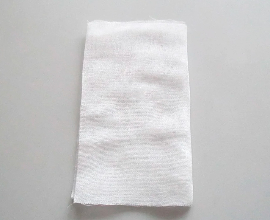 Изделие получается многослойным, но количество слоев зависит только от качества используемого материала. Чем плотнее переплетение нитей, тем меньше понадобится слоев: для хорошей марли — не более восьми, для тонкой — до двадцати слоев.