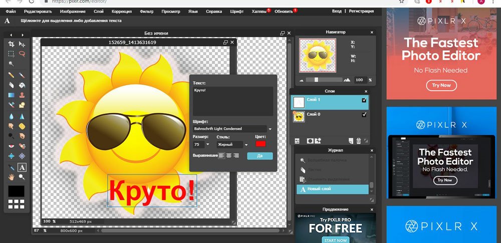 По желанию добавьте текст. Для этого жмите на букву Т на панели инструментов, поставьте курсор в необходимое место и сделайте надпись. После этого форматируйте текст и удалите рабочий черный фон.