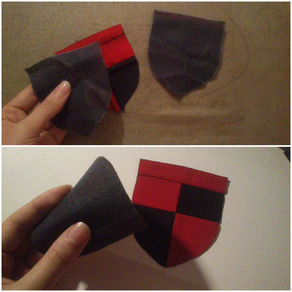 3) Сшиваем детали нашивки вместе. Если вы выбрали синтетическую ткань, как я, для удобства в работе ее края можно обжечь. Швы тщательно проглаживаем и разутюживаем.