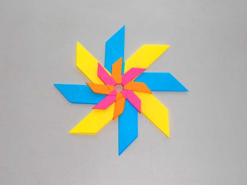 Закончив с изготовлением модулей, вам нужно собрать звезду. Внимательно посмотрите, как выглядит наша модульная звезда оригами, чтобы понять, как она строится. Это действительно очень просто!