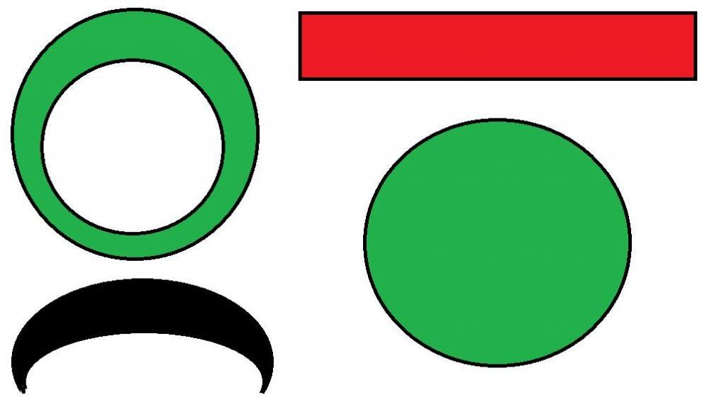 Следующий вариант изготовления военной фуражки, фото которой есть выше в статье, немного сложнее, так как тулья для нее представлена не простым кружком, а состоит из двух частей. На рисунке ниже можно рассмотреть выкройку такой фуражной шапки. Полоска красного цвета — это околыш. Для данного варианта головного убора она не вырезается широкой. Достаточно нарисовать выкройку 3-4 см в ширину. Как измерить необходимую длину, вы уже знаете.