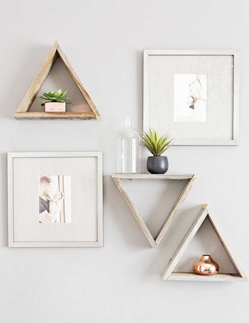 Навесные или настенные. По названию понятно, что это те полки, которые располагаются на стенах. Декор настенных полок предполагает размещение небольших и не тяжелых предметов.