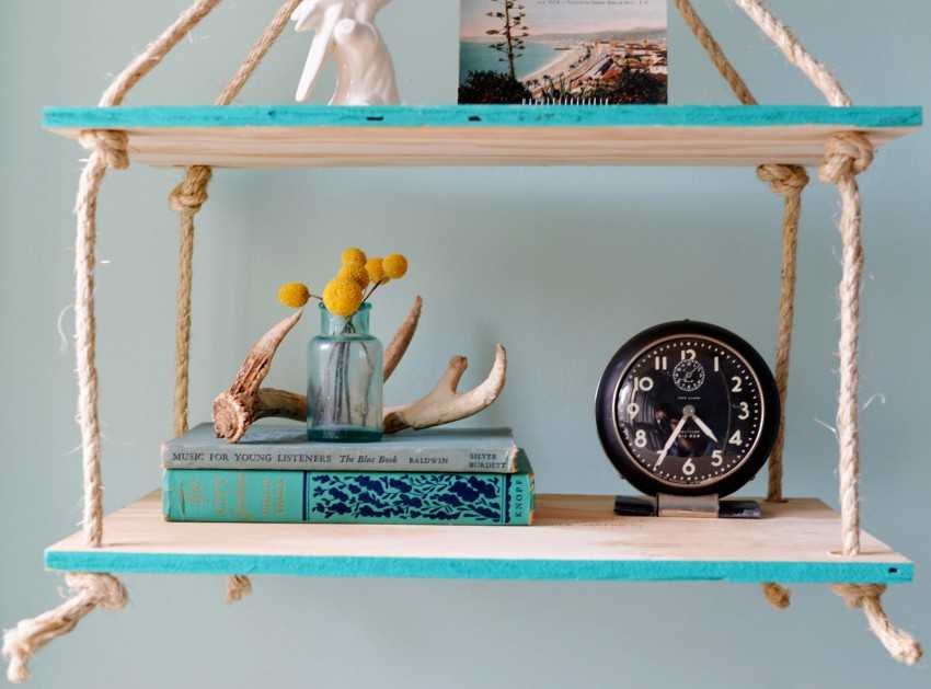 Используя подручные материалы, можно получить одновременно бюджетный и оригинальный вариант полки.
