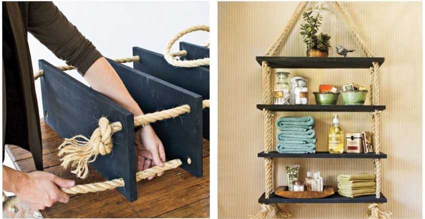 Наверное, нет смысла перечислять все подручные материалы, которые подойдут для изготовления полочки. Проще просмотреть и прокомментировать иллюстрации конкретных вариантов. Будучи увлеченным необычным решением, не следует забывать о соответствии Вашей задумки интерьеру помещения.
