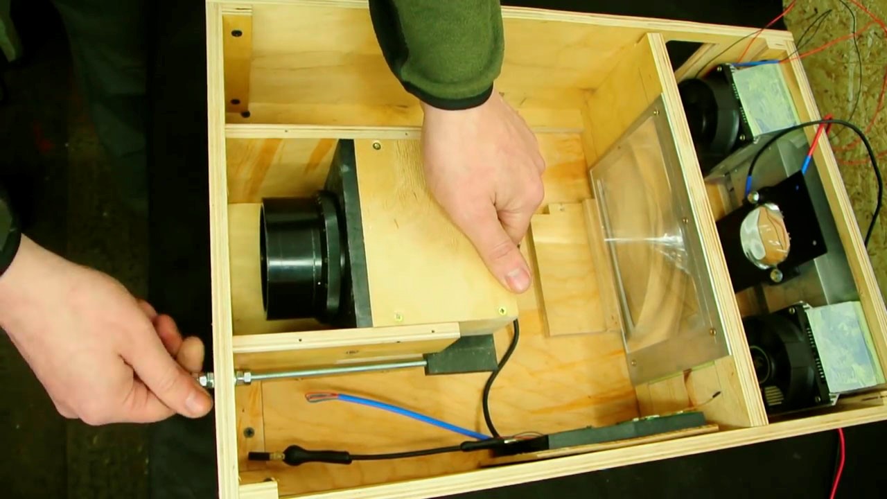 Надо не только все разместить в самодельном корпусе, но и обеспечить правильную вентиляцию там, где она нужна, а также работоспособность гаджета и дистанционное управление им. Затраты на покупку комплектующих изделий однозначно будут существенно выше в сравнении с уже рассмотренной конструкцией. Но, тем не менее, существуют и самодельные мультимедийные проекторы. Один из них показан далее: