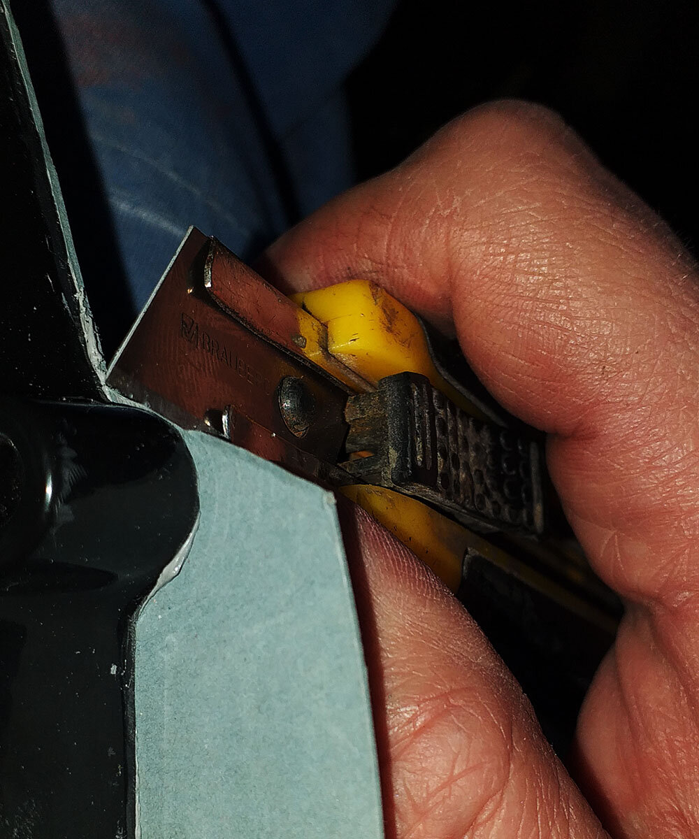Берем канцелярский нож во таким хватом и обрезаем внешний контур.
