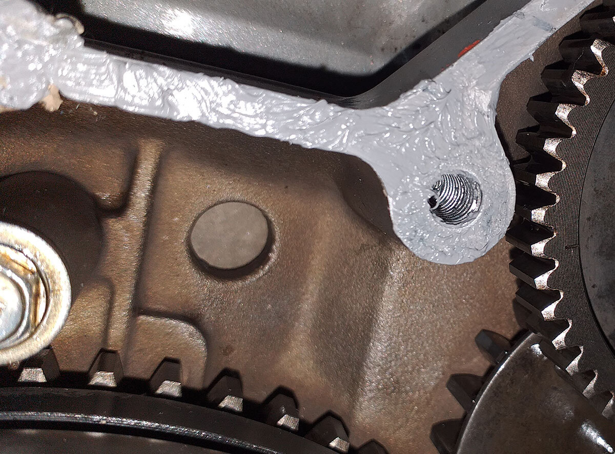 - Демонтируется задняя крышка привода распределительного вала — откручиваются гайки крышки, а затем остальные крепежи.