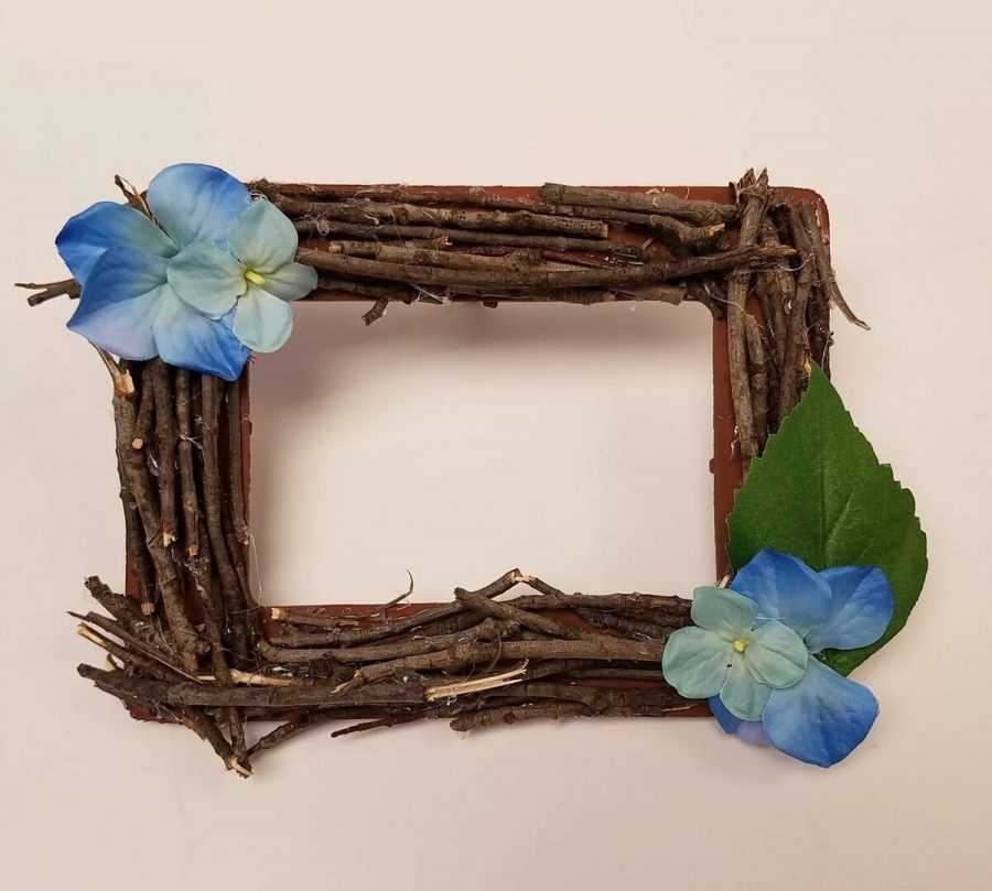 Деревянные элементы являются отличным материалом для конструирования рамки. При изготовлении фоторамки из дерева наиболее удобными считаются ветки вербы, ивы и камыша.