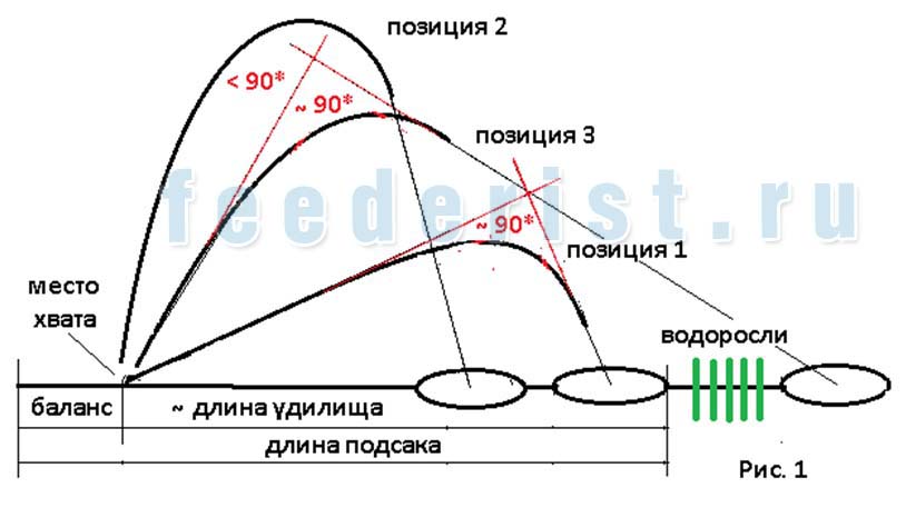 При этом, если удилище намного короче подсака, то, чтобы обеспечить прямой угол удилище также надо достаточно высоко поднимать (позиция 3). И тем выше, чем короче удилище. При этом длина свободной лесы увеличивается и завести крупную рыбу в подсак становится труднее. Ее, как и в предыдущем случае, придется ловить подсаком с тем же исходом.