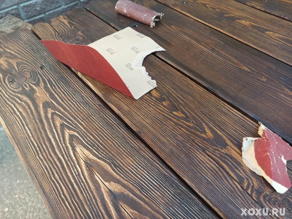 Вот фото, на котором только одна доска обработана наждачной бумагой: