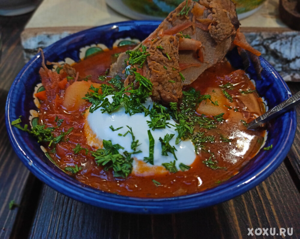 Первое блюдо, которое на нём приготовил и выложил в блог – это бесподобно вкусный борщ! Вот, что получилось. Как вам фото на новом столе?