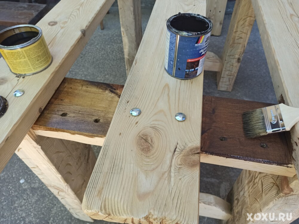 Стол для дачи своими руками почти готов. Осталось покрыть его лаком