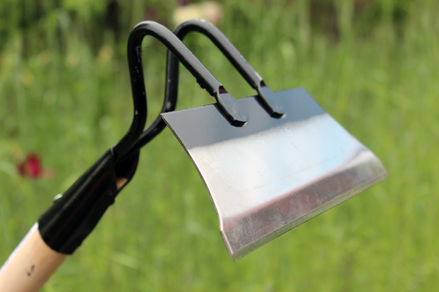 Мотыга – незаменимая помощница для окучивания или прополки грядок, а также для создания небольших рядочков либо ямок и для аэрации почвы. Она имеет вид выполненной из стали трехсторонней лопатки, в проушину которой вдет расположенный под прямым углом к лезвию черенок. И работать при этом можно всеми тремя ее сторонами! По сути, мотыга – это прикрепленный к рукоятке самозатачивающийся клин, оснащенный острыми режущими кромками. А чтобы он действительно мог самозатачиваться, он должен быть изготовлен из высококачественной стали!