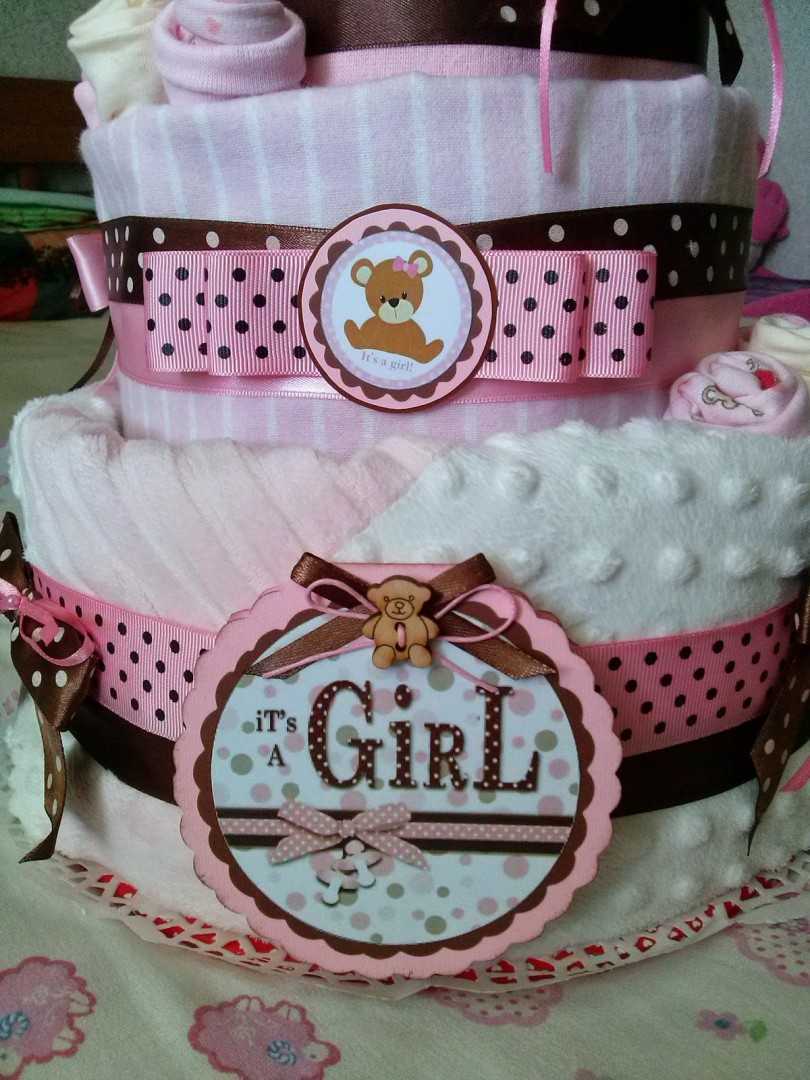 Вариантов декорирования самодельного торта из памперсов для девочек очень много. Используют с этой целью любые предметы, которые необходимы для ухода за ребенком. Для этого подойдут: