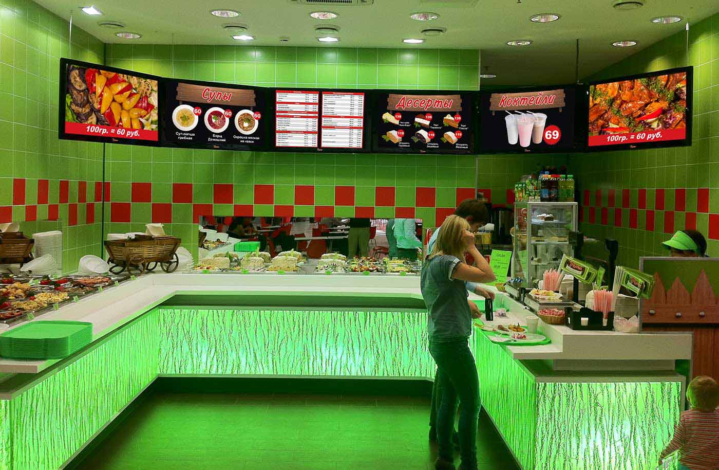 В торговом зале лайтбоксы крепятся на стенах, подвешиваются к потолку или устанавливаются на пол. Стоимость изготовления лайтбокса — от 8 тыс. руб. за 1 кв. м.