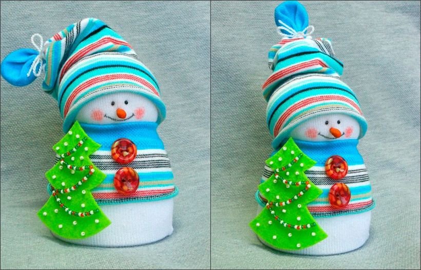 Новогодний снеговик из носка на елку