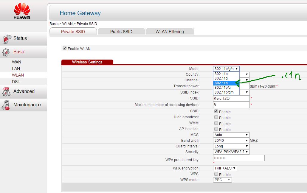 3. Поменять режим вещания роутера