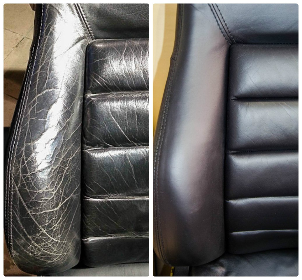 Иногда химчистка салона автомобиля не способна справиться с глубокими загрязнениями, сопряженные проникновением или разрушением защитного слоя лака, К примеру, застарелые пятна (от еды, напитков), засаленность, загрубевшая, износившаяся кожа, различные следы от краски (в том числе от гелиевых/шариковых ручек). Избавиться от этих проблем поможет реставрация кожи.
