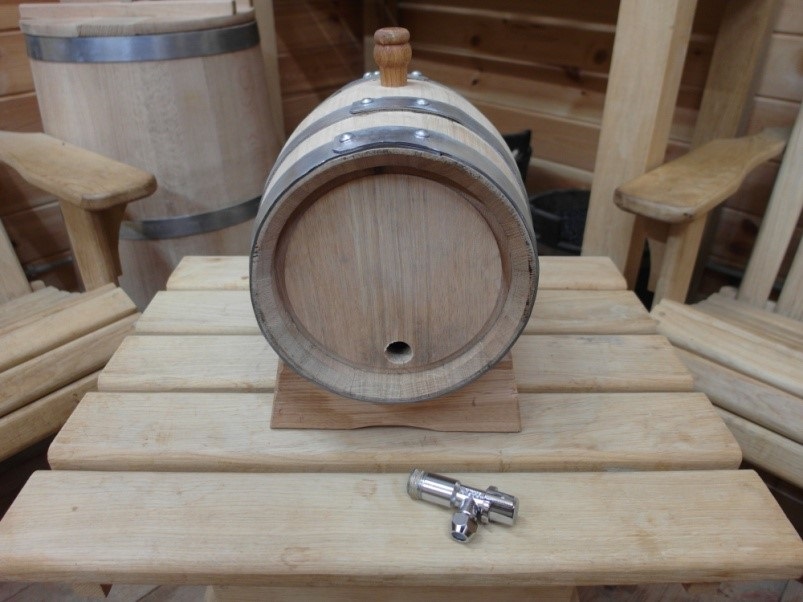 Установите бочку на подставку, в горизонтальное положение. Вставьте пробку (гвоздь) в заливное (пуковое) отверстие. В нижней части донышка поставьте риску так, чтобы она находилась на одной оси с центром донышка и пробки. Прицелится легче всего по пробке. В бочках, предназначенных для хранения вина, кран устанавливается вверху нижней трети донышка, чтобы при снятии пробы не беспокоить осадок.