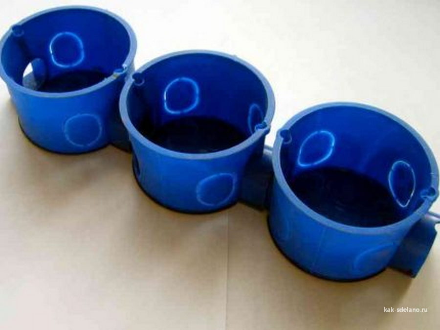 В его стенках или днище имеются монтажные отверстия для подвода электропроводки. При установке подрозетника, достаточно удалить перемычки и выдавить заглушку.