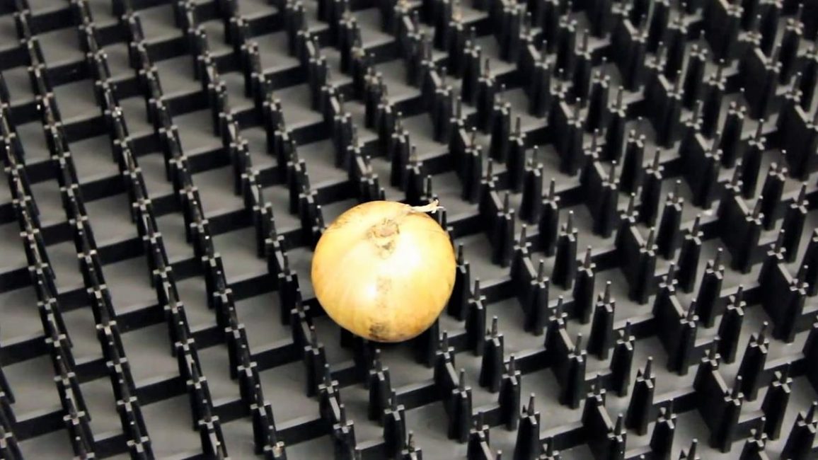 В специализированных магазинах продаются ящики размером 60х40 см. Их конструкция вызывает восхищение. Дело в том, что на дне ящика есть множество шипов, на которые нанизываются луковицы в процессе посадки.