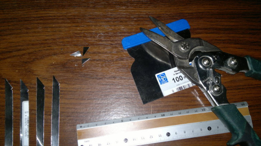 - Вырезают из монтажной ленты две полосы – ширина 8 мм, длина составляет 10 мм. Толщина ленты – не более 1 мм;