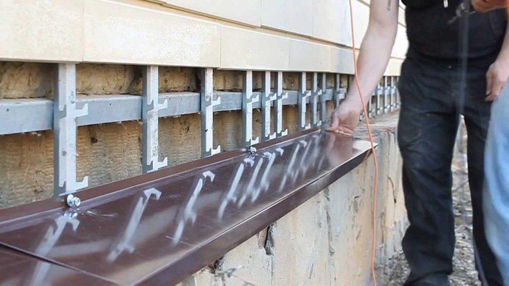Монтаж отлива на фундамент с вентилируемым фасадом