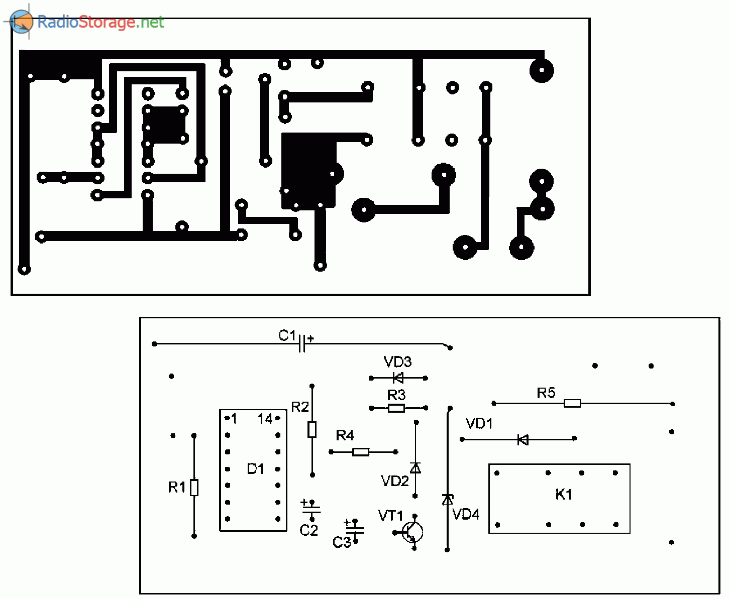 Печатная плата показана на рисунке 2. На плате размещены все детали, кроме кнопки.
