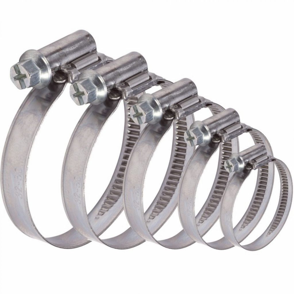 Существует два типа хомутов, которые нам подойдут. Один имеет замочек в форме буквы П, другой – ленточного типа. И оригинальные, и «кустарные» товары изготавливают из прочных сплавов, так что в надежности такой «железки» можете не сомневаться. Она достаточно жесткая, но вместе с тем становится покладистой при затяжке.