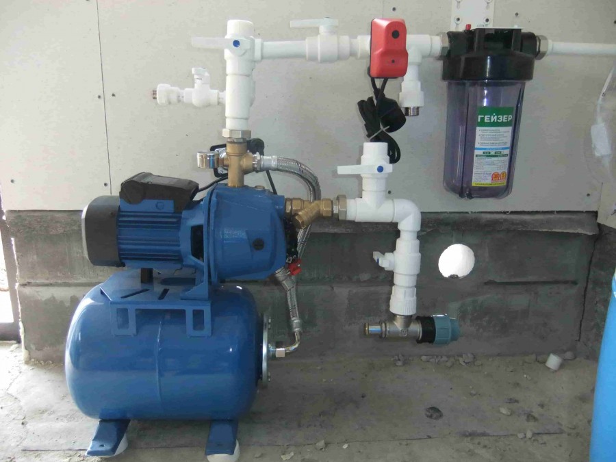 Обязательный компонент станции — гидробак, это емкость, формирующая запас воды в водопроводе, исключающий частое включение насоса и влияние гидроударов