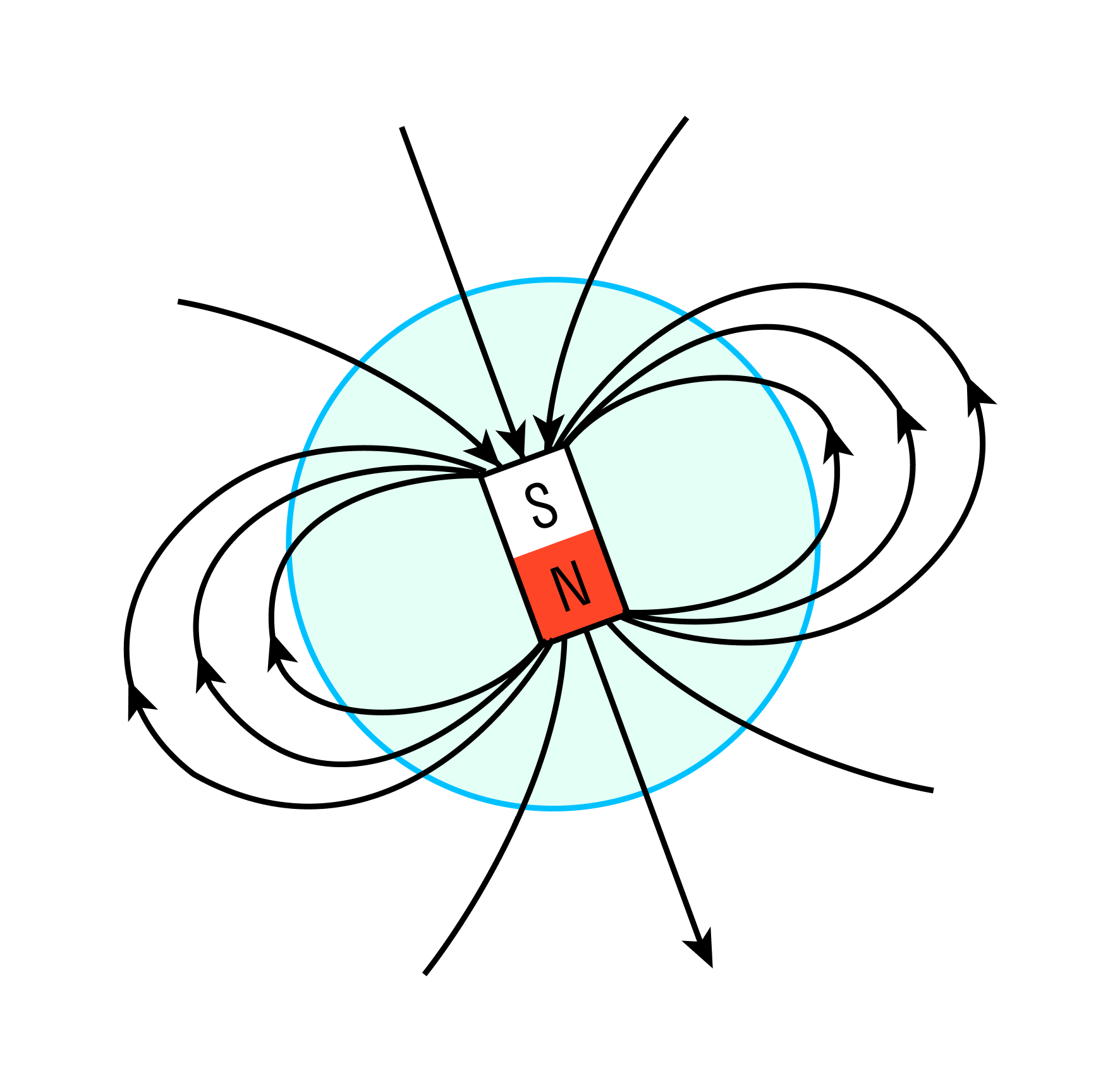 Любое магнитное поле описывается магнитными линиями, которые выходят из северного поля и приходят в южный. Эти линии всегда замкнуты, даже если у них бесконечная длина. Вот так это выглядит: