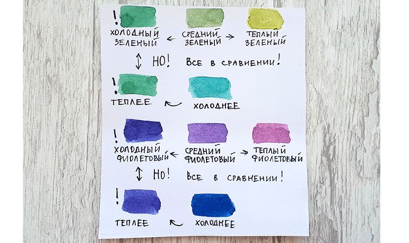 Важно понимать, что речь идет о базовых цветах, а не оттенках. Ведь в сравнении они одни окажутся теплее, другие холоднее
