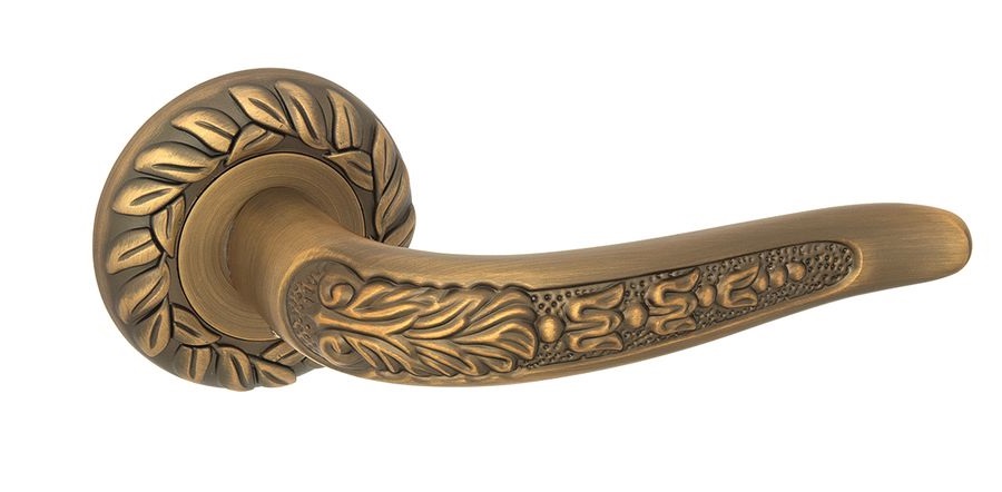 Дверная фурнитура на розетке работает по такому же принципу, как и на планке. Отличаются они лишь формой в месте соединения рукоятки и замочного устройства – основание изделия выполняется в форме круга или квадрата. Выпускается много моделей с современным дизайном. Материалом изготовления обычно служит сплав металлов: алюминия, меди, латуни или стали.