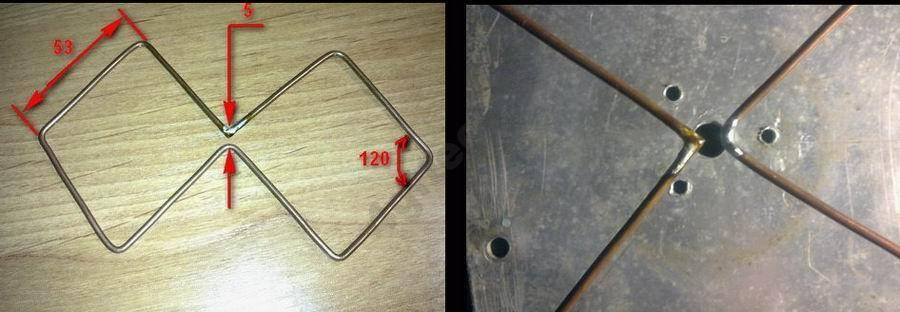 Медная проволока, подготовленная заранее, изгибается и превращается в зигзагообразную рамку, представляющую собой два ромба. Стороны каждого из них имеют длину 80 см, а общее расстояние между противоположными углами составит 226 см. Далее калькулятор антенны определяет точку соединения этих ромбов, как место соединения с кабелем. К данной точке припаивается кусок кабеля, размером 50 см, а к его противоположному концу накручивается разъем F-типа. Далее к разъему подключается основной кабель необходимой длины.