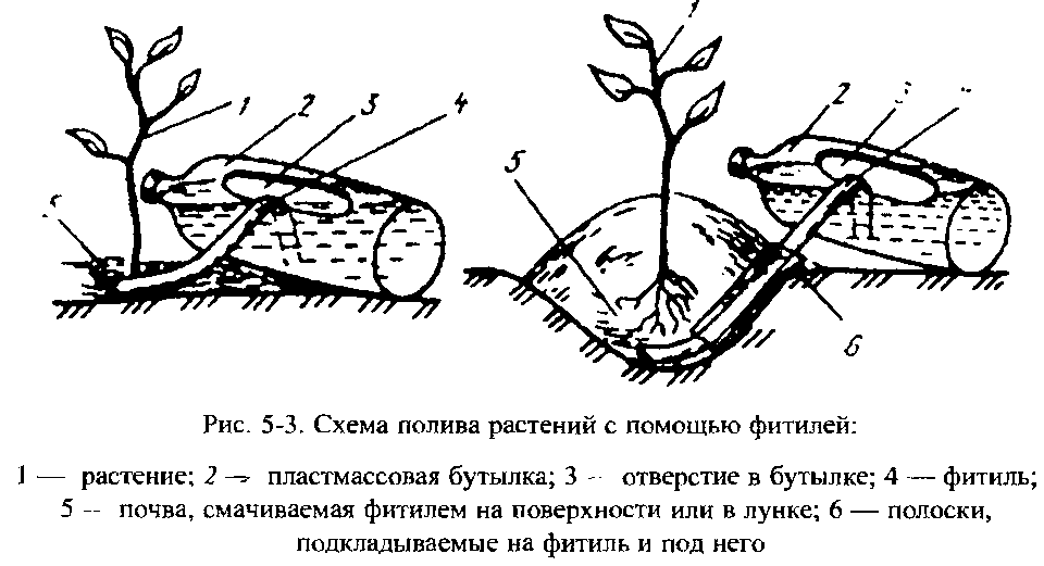 Если на участке часто появляться возможности нет, в периоды длительного отсутствия используют пяти литровые пластиковые бутылки: