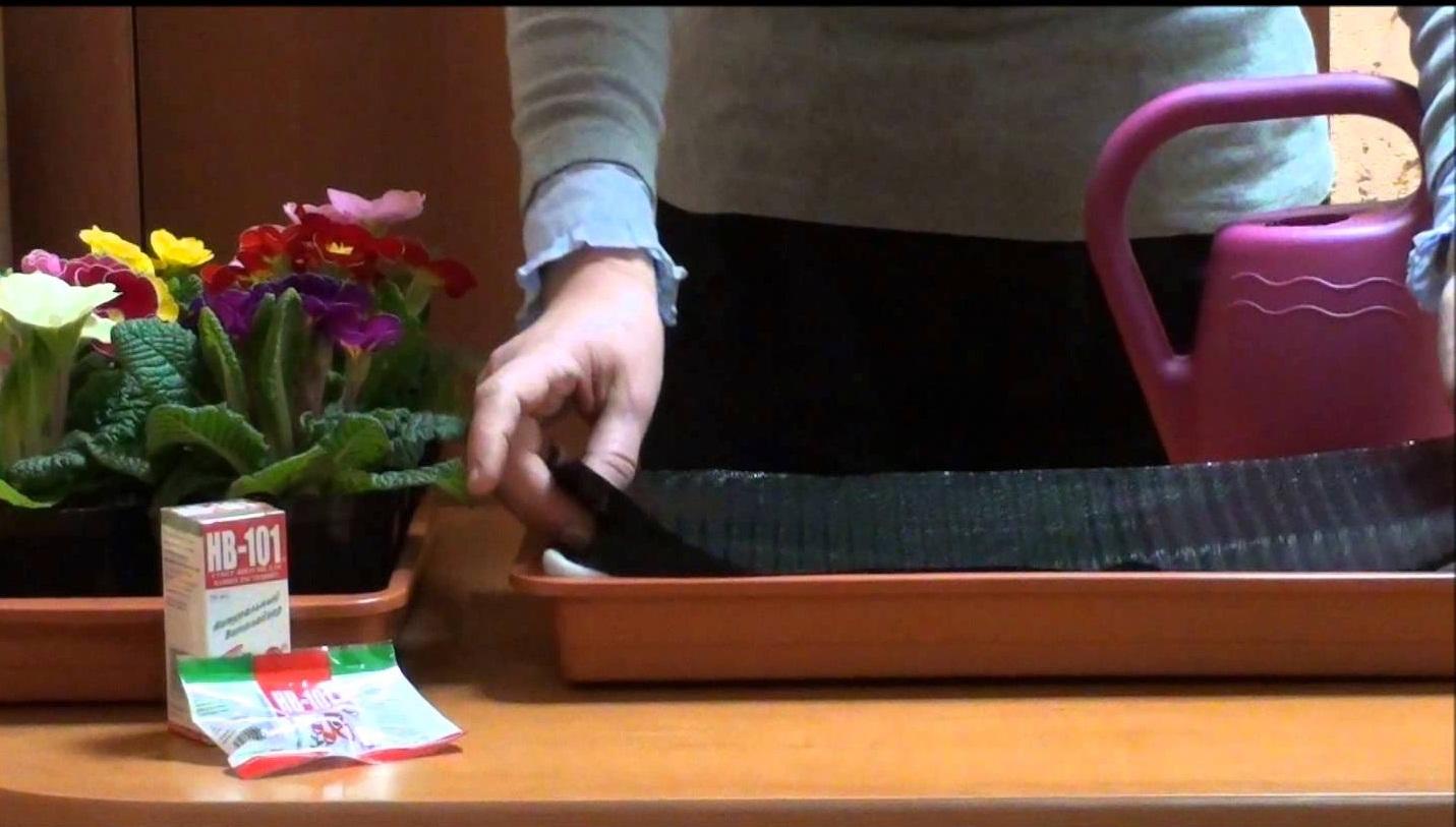 Чтобы насыщать коврик влагой, один его конец погружается в емкость с водой. Можно выбрать и другой способ, для которого потребуются два поддона разных размеров. В больший наливается жидкость, и в него погружается меньший поддон, имеющий отверстия на дне, а сверху застилается мат, на который устанавливаются горшки.