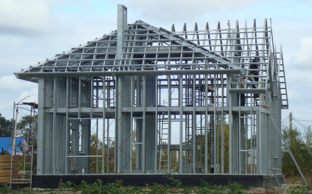 Вариант полной сборки дома на стальном каркасе (технология ЛСТК)