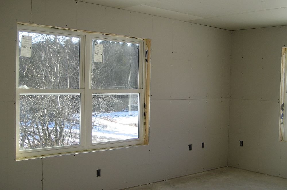 - Утепление. В стены дома закладываются изоляционные маты или плиты. Монтируется пароизоляция. Выполняется обшивка фанерой или гипсокартоном.