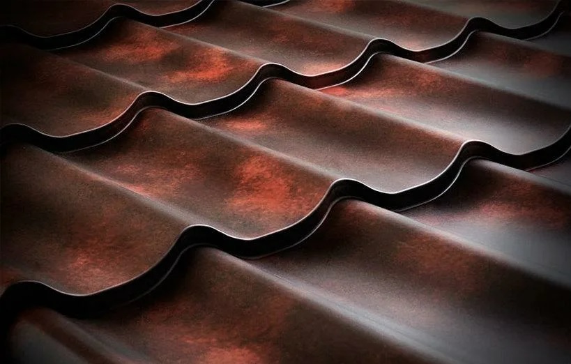 Металлическую черепицу изготавливают из оцинкованного листа железа с полимерным покрытием.