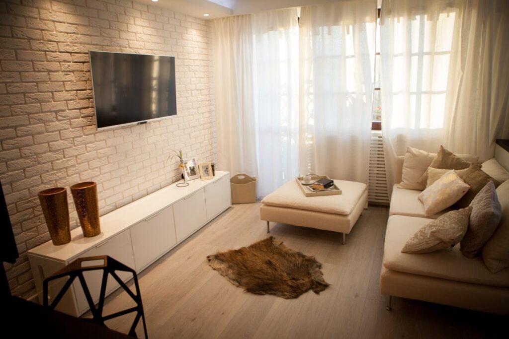 Стена в гостиной из белого кирпича — как интегрировать ее в интерьер?