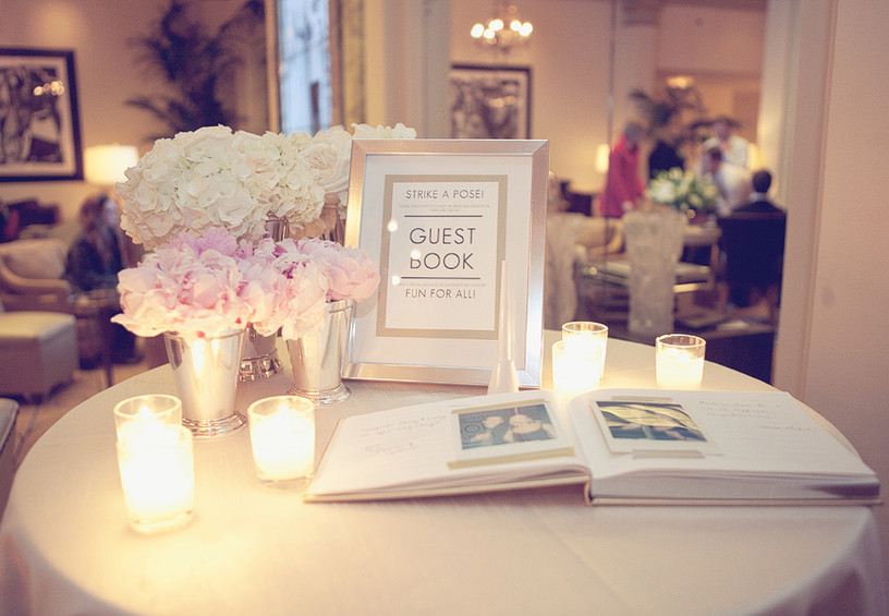 Здорово, если у тарелки каждого из гостей расположится красивая ручка и мини-записочка “Не забудь черкнуть пару строк в нашей Книге пожеланий!”