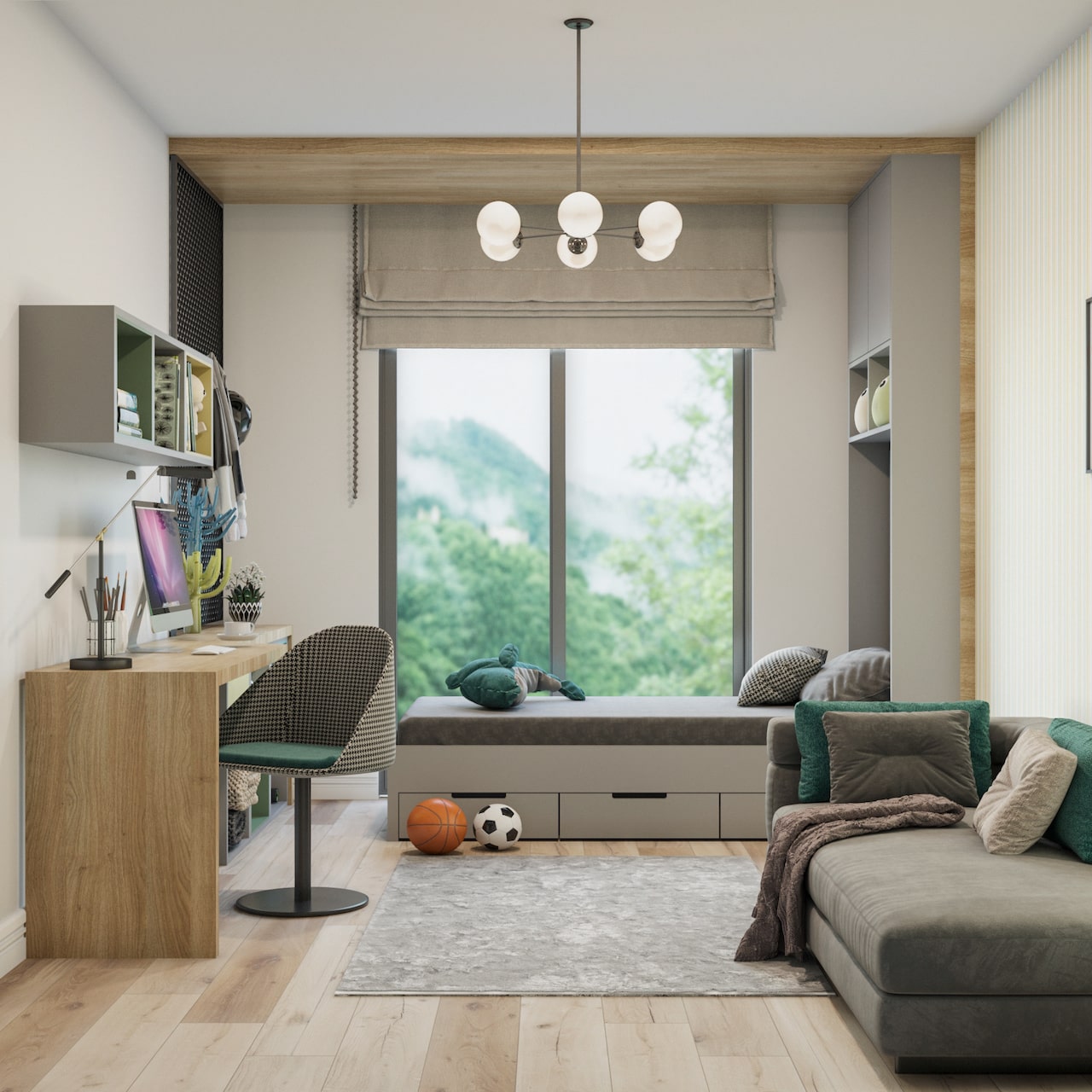 Дизайн комнаты для мальчика в серой цветовой гамме