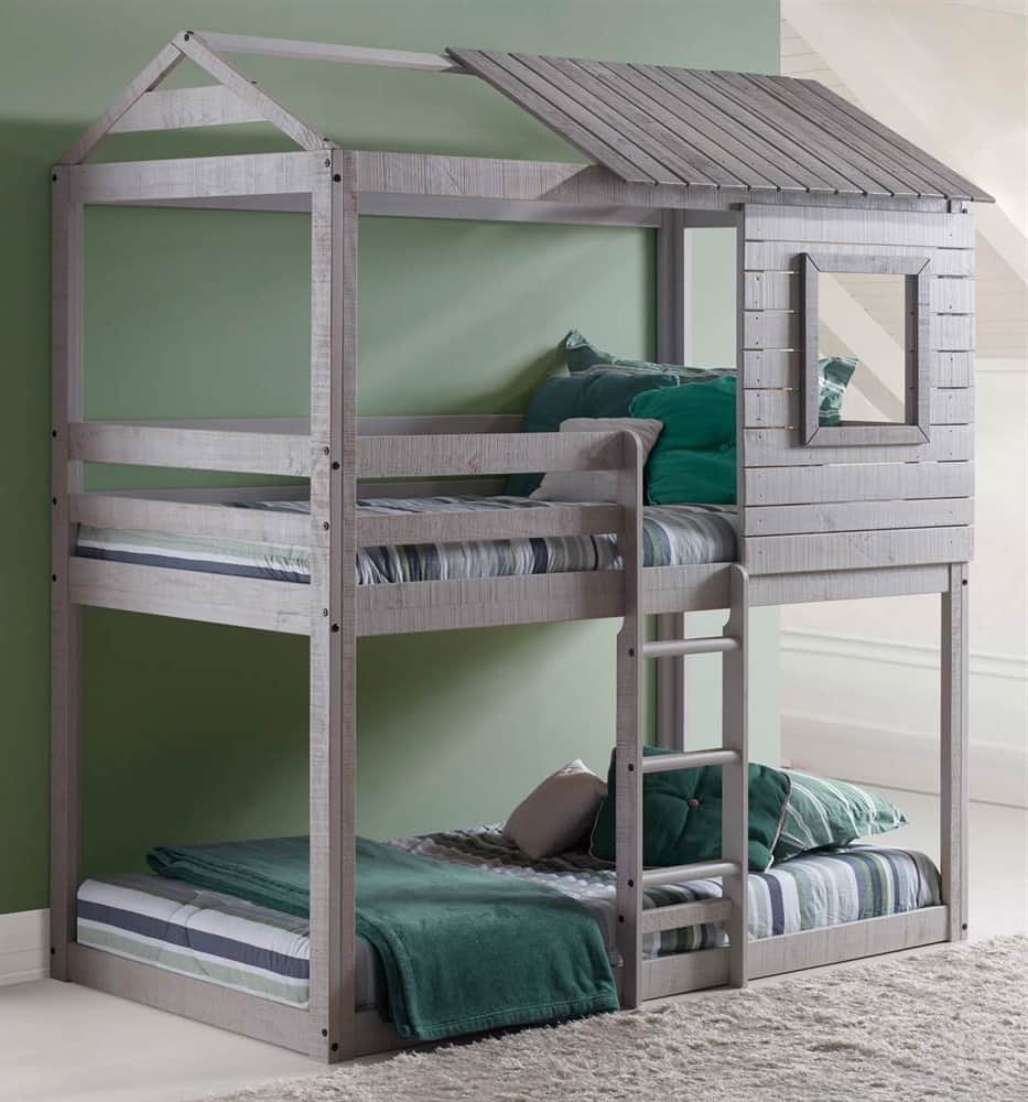 Интересный вариант двухъярусной кровати в виде домика, в нем можно поиграть и отдохнуть