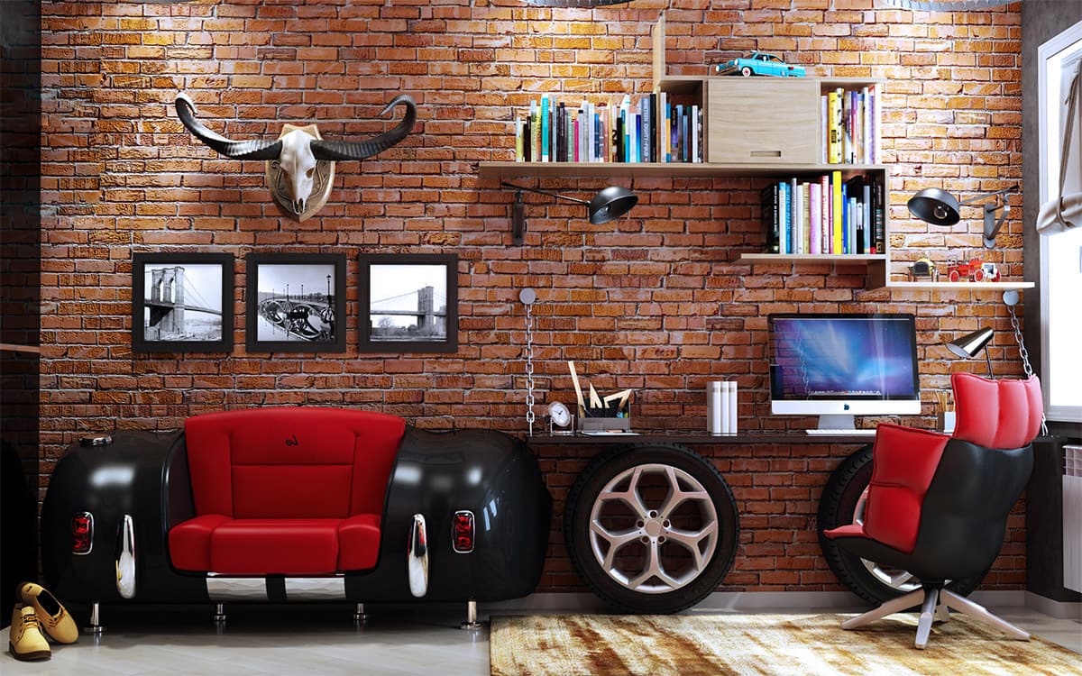 Для стиля лофт на стене можно оставить или сделать заново кирпичную кладку, а также красиво и практично смотрится в подростковой комнате декоративная штукатурка, которую наносят на все поверхности или только на одну в виде панно.