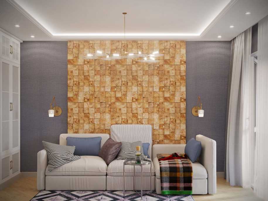 Подобные комбинированные обои в зал помогают сделать помещение совершенно необычным и неповторимым, показать достоинства и скрыть недостатки.