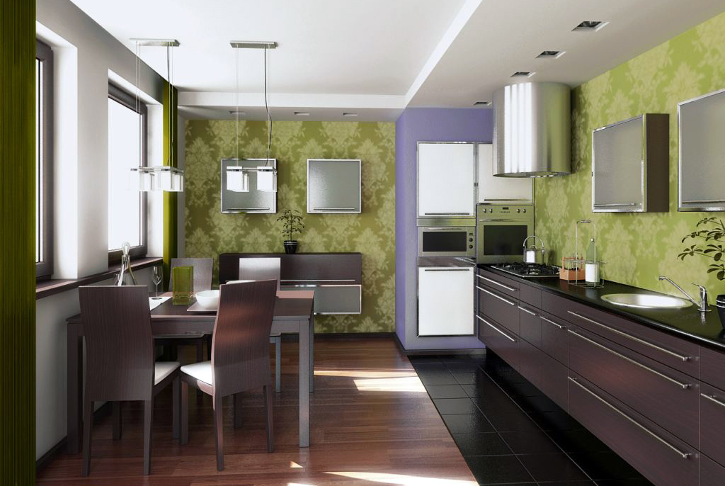 Обои и мебель на кухне должны сочетаться между собой