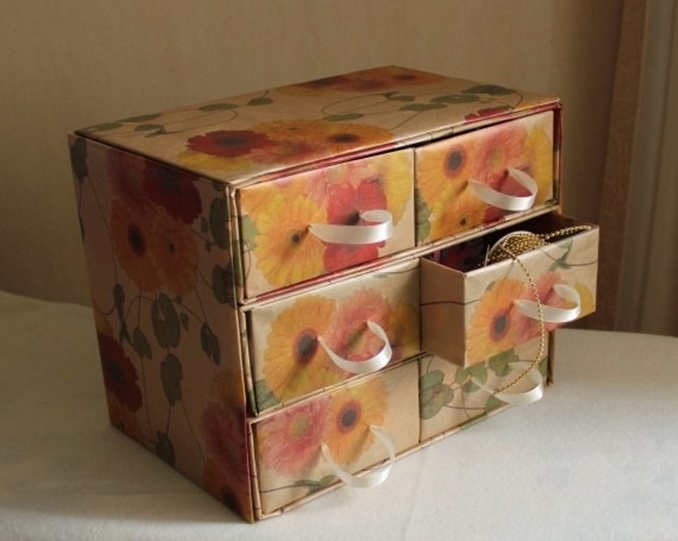 Изготовить комод из картона, другого подручного материала будет под силу каждому.