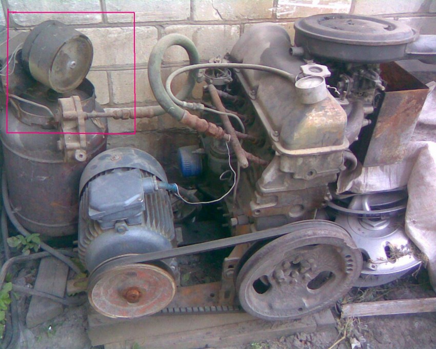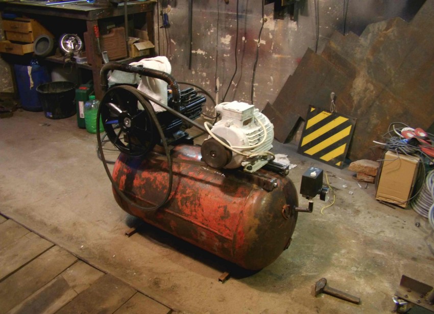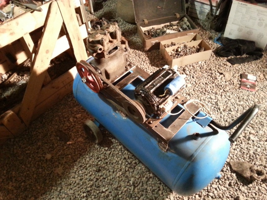 Есть примеры, когда в гаражной мастерской собирался компрессор из двс своими руками с использованием мотоциклетного мотора и старого двигателя от легковушки.