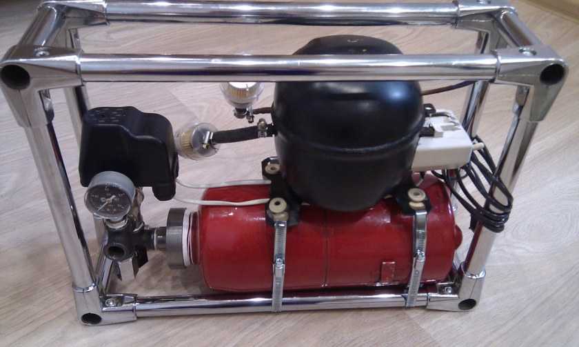 Чтобы сконструировать компрессор воздушный своими руками, нужно хорошо продумать план действий, создать схему, подобрать или докупить какие-то комплектующие. Рассмотрим, как сделать компрессор своими руками, используя оборудование от старого холодильника и огнетушителя.