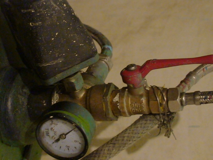 Действия по соединению всех элементов обвязки были описаны в начале статьи. Но, поскольку данный агрегат сделан из компрессора ЗИЛ 130, и является более мощным, чем ранее рассматриваемый, то потребуется установка предохранительного (аварийного) клапана. Он сбросит излишек давления, если по каким-либо причинам не сработает автоматика.